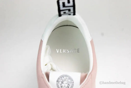 Versace Powder Blush Vitello Leather Signature Lace Sneakers