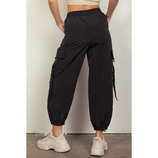 VERY J Elastic Waist Woven Women's Cargo Pants (Black)