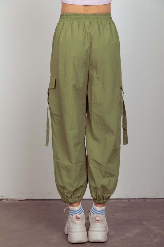 VERY J Elastic Waist Woven Women's Cargo Pants (Military Green)