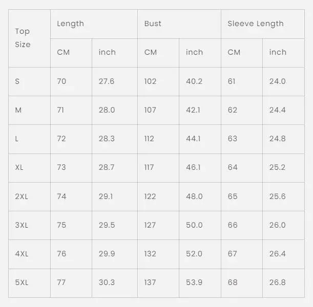 - Sizes: Wide size options from S to 5XL to ensure the perfect fit for every body type.