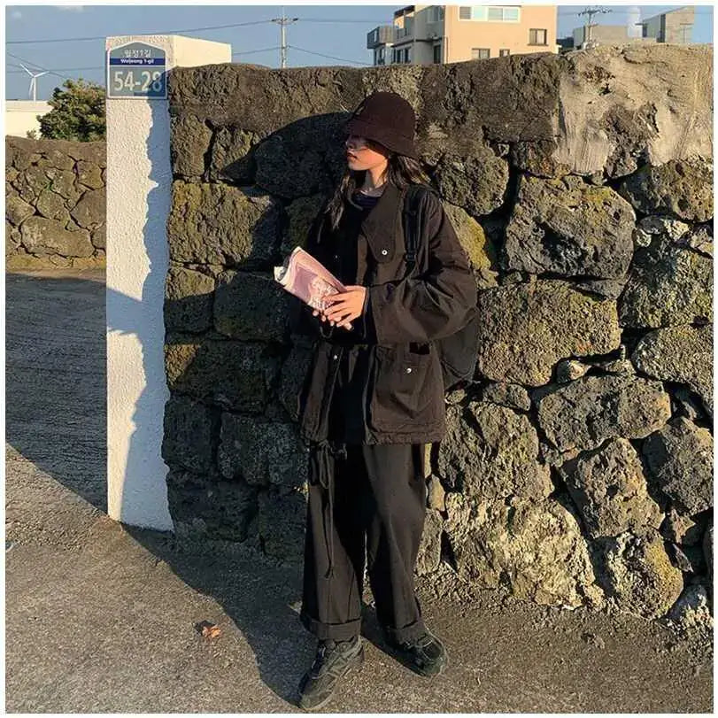 But that's not all – drawing inspiration from the Y2K student girl aesthetic, this jacket incorporates a subtly edgy vibe into its design, adding an extra layer of uniqueness to your ensemble. Whether you're out running errands or looking to upgrade your fashion game, this oversized cargo jacket stands ready to elevate any look with its blend of trendiness and utility.